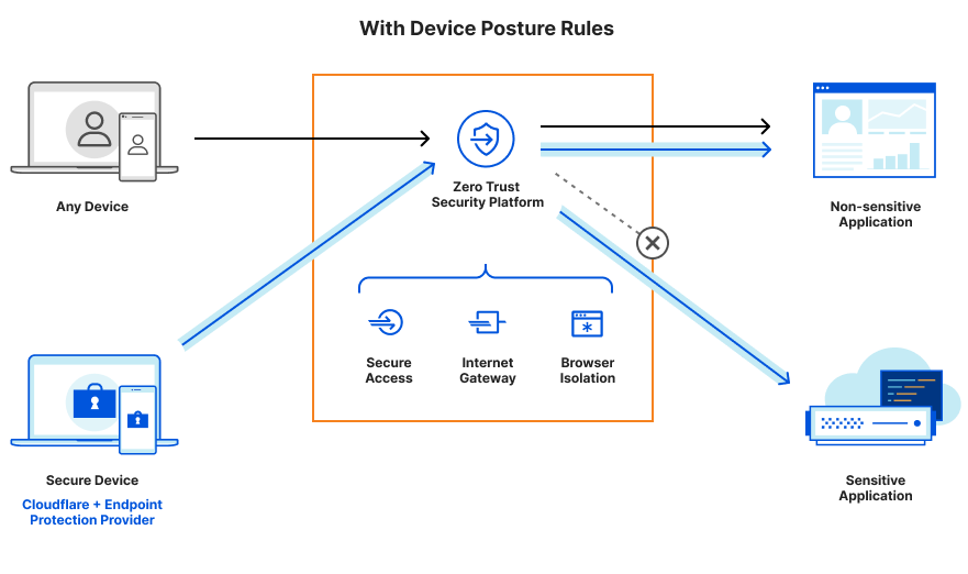 Cloudflare is partnering with leading endpoint security providers to make Zero Trust security seamless for organizations. Cloudflare Zero Trust customers can now configure rules to restrict access to sensitive resources based on the device posture signals from our partners' endpoint security platforms.