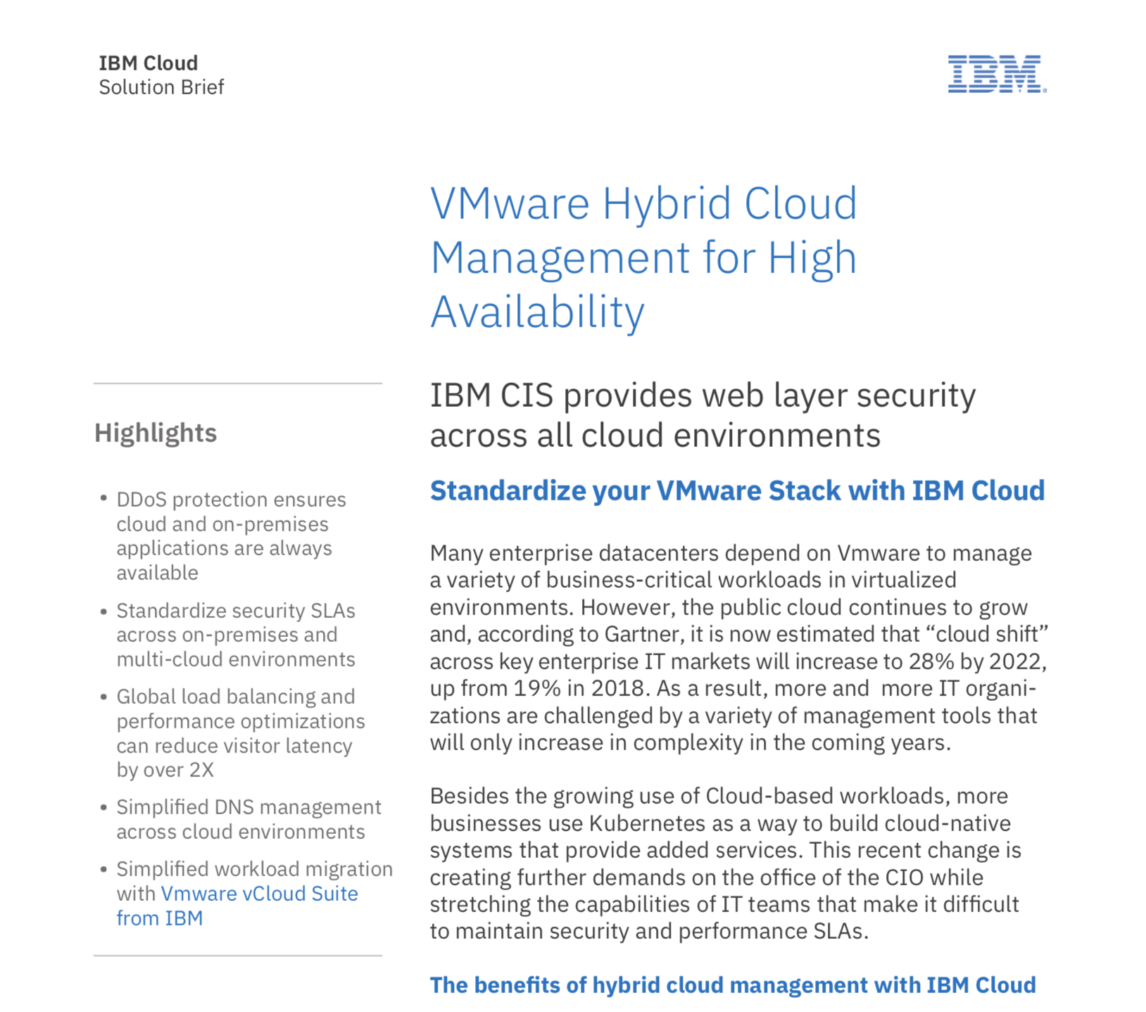Cloud Internet Services, powered by Cloudflare, provide several solutions that address common IT challenges in managing cloud workloads. Check out the following solution briefs to understand how Cloud Internet Services provides high availability and disaster recovery across hybrid cloud environments.