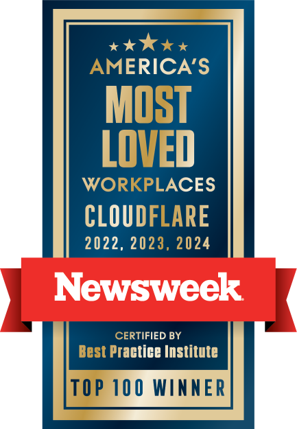 Cloudflare has been named among the Top 100 Most Loved Workplaces for three consecutive years in 2024, 2023 and 2022.
